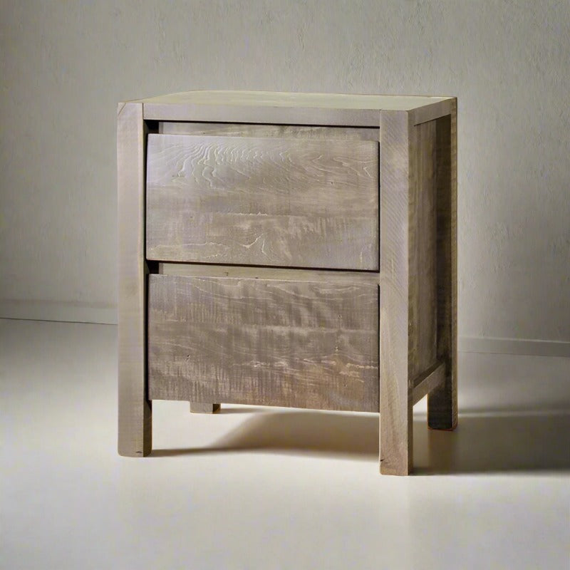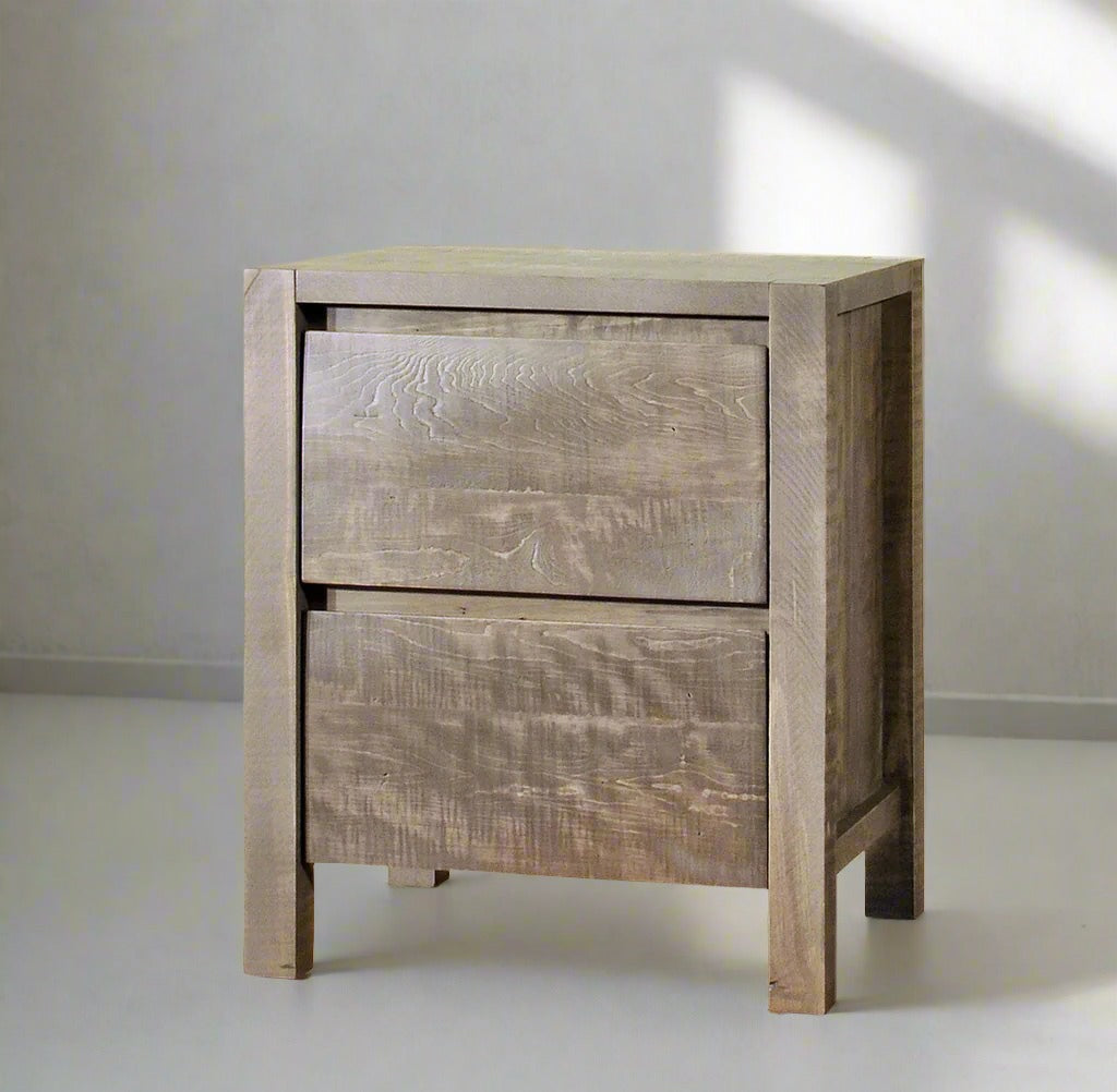 Bring bold character and refined rustic style to your home with the Meta Sequoia Solid Wood Nightstand. Thoughtfully handcrafted in Ontario by skilled Mennonite artisans, this piece is made from solid Wormy Maple, Brown Maple, or Oak—each showcasing distinctive grain patterns that make every nightstand truly one of a kind. Designed for lasting beauty and built with care, this Canadian-made piece is a timeless addition to any space.