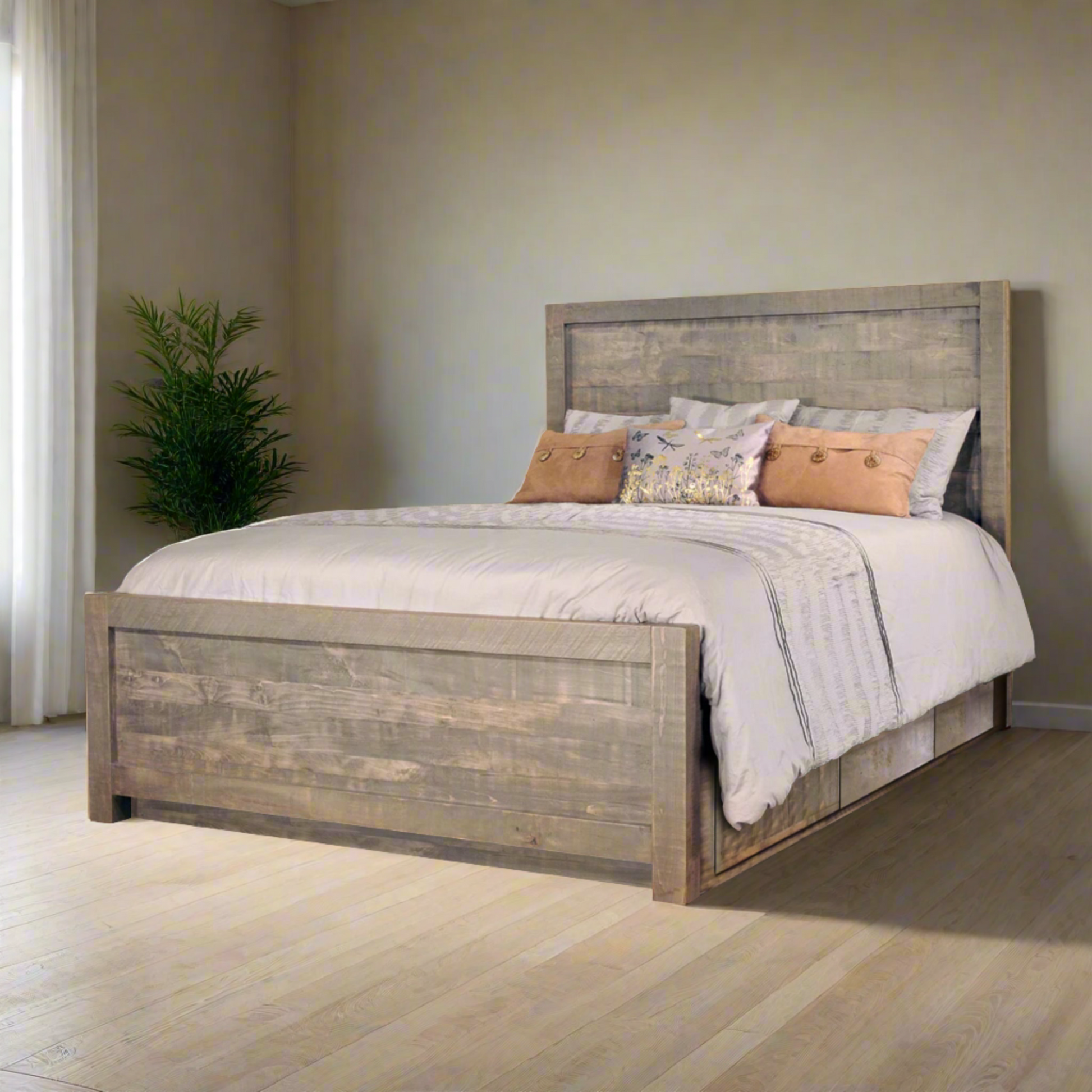 Bring bold character and refined rustic style to your home with the Meta Sequoia Solid Wood Storage Bed. Thoughtfully handcrafted in Ontario by skilled Mennonite artisans, this piece is made from solid Wormy Maple, Brown Maple, or Oak—each showcasing distinctive grain patterns that make every storage bed truly one of a kind. Designed for lasting beauty and built with care, this Canadian-made piece is a timeless addition to any space.
