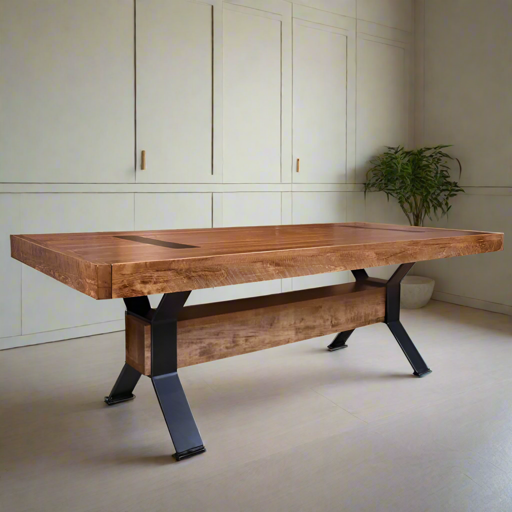 Arthur Philippe Solid Wood Top With Metal Base Dining Table
